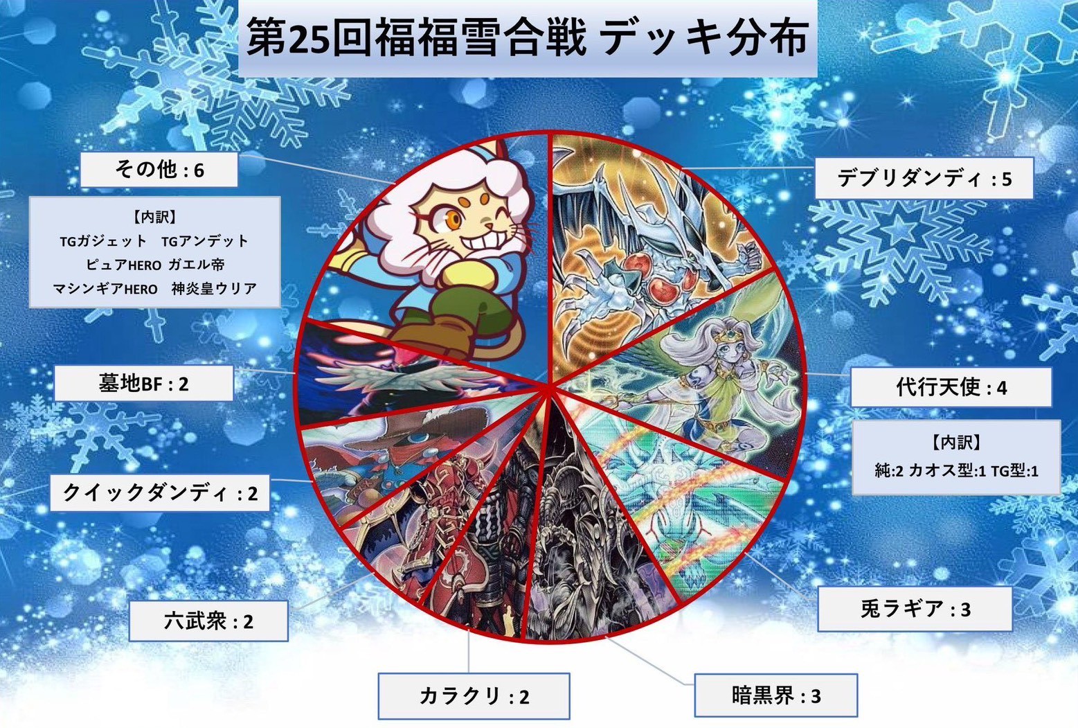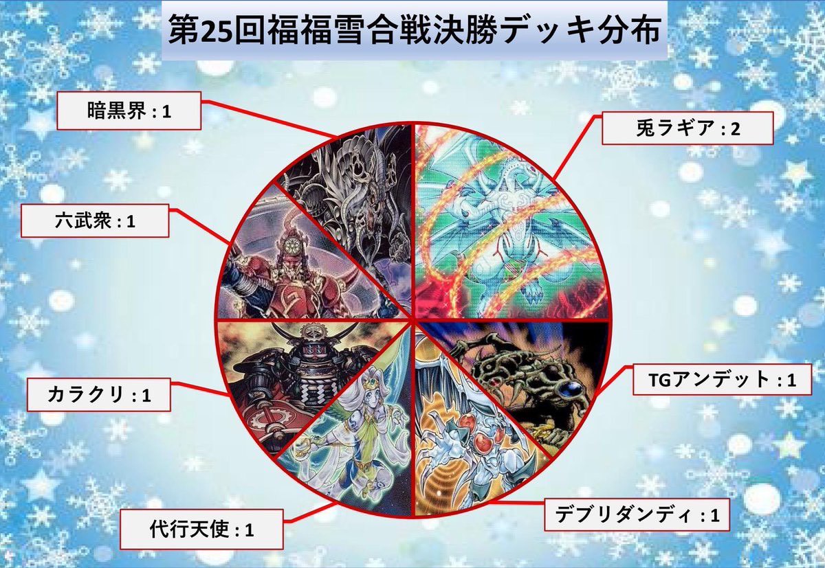 直近では3大会連続で優勝していた【兎ラギア】の牙城が崩れ、更には環境デッキに該当する『8強』以外が入賞するなど、大番狂わせの25回大会となりました。