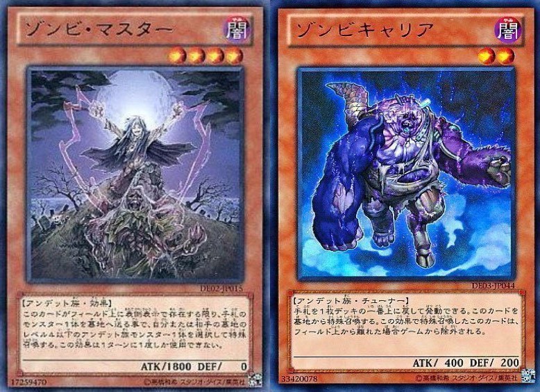 『ガジェット』が後続のリソースを確保する能力に長けているのに対し、アンデット族は「ゾンビマスター」や「ゾンビキャリア」など自力で特殊召喚する手段を持ったカードが多く、【TGガジェット】に比べてシンクロ、エクシーズモンスターの展開が容易になっています。