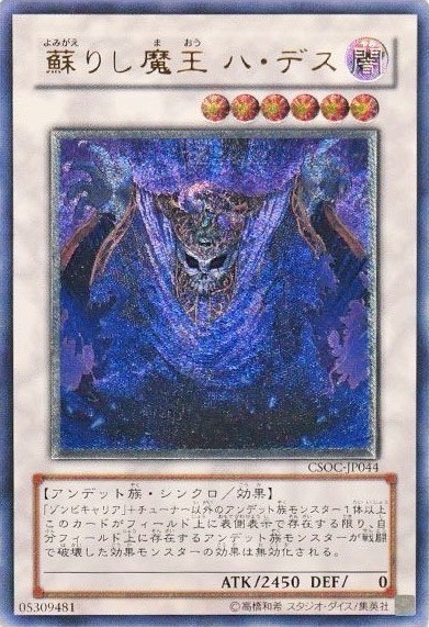 「蘇りし魔王ハ・デス」が場にいる限り、アンデット族モンスターが戦闘破壊したモンスター効果は無効化されます。