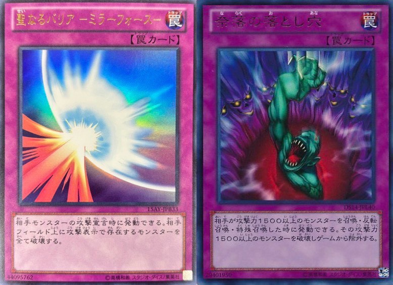 決勝戦はこの両デッキの対戦となりましたが、最後は【代行天使】側の伏せカードが召喚に反応する「奈落の落とし穴」か攻撃に反応する「聖なるバリア-ミラーフォース-」かの読み合いとなりました。