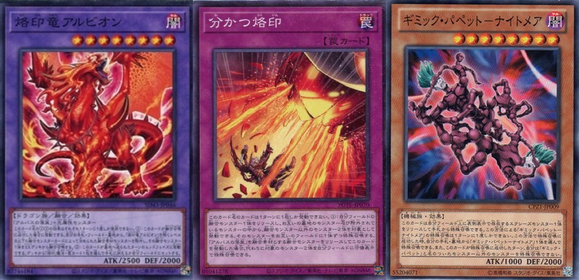「烙印竜アルビオン」等の効果で「分かつ烙印」をセット、相手ターンにその効果で「ギミックパペットナイトメア」を相手フィールドに特殊召喚。